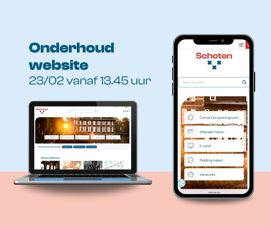 Op maandag 23 februari wordt er vanaf 12.45 uur in de namiddag gewerkt aan de gemeentelijke website. Op die manier blijven we een kwaliteitsvolle dienstverlening garanderen. Hierdoor kan je voor de rest van de dag geen online afspraken maken.
