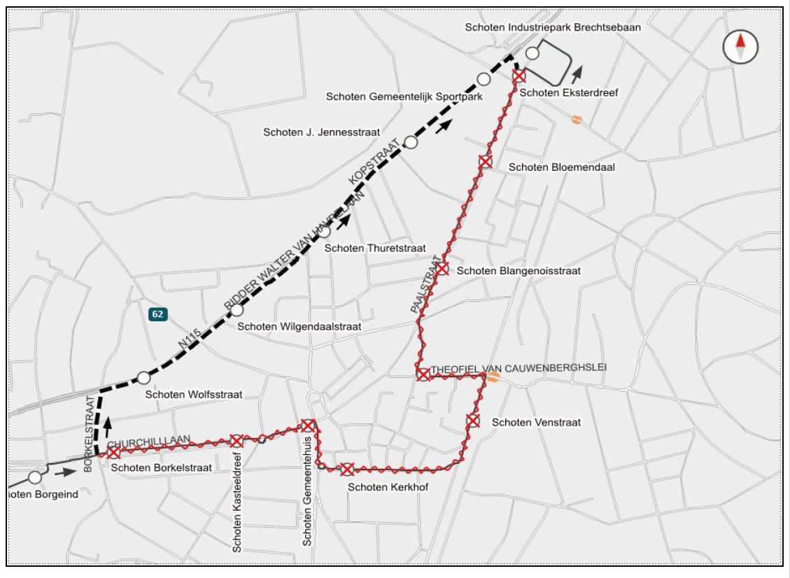 Lijn 62: Richting Schoten Industrie Brechtsebaan