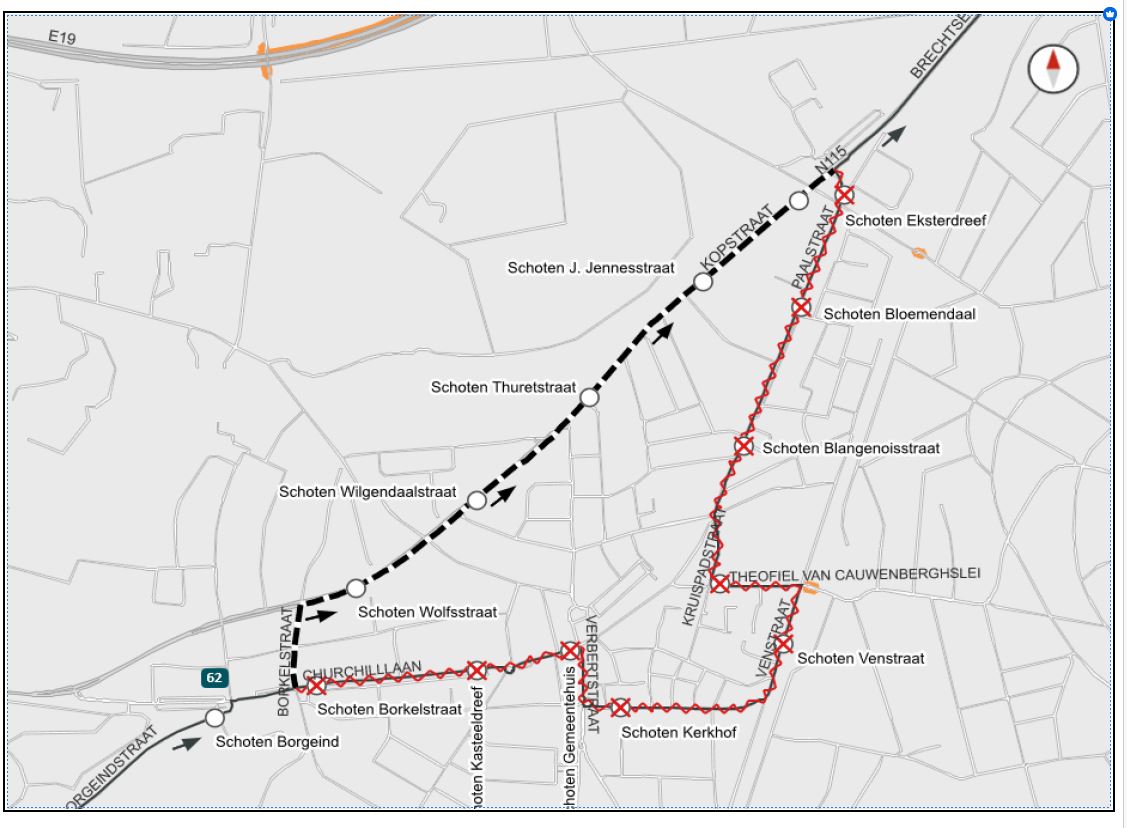 Deze route geldt zowel voor Lijn 62 vanuit Sint-Job als van Industrie Brechtsebaan.