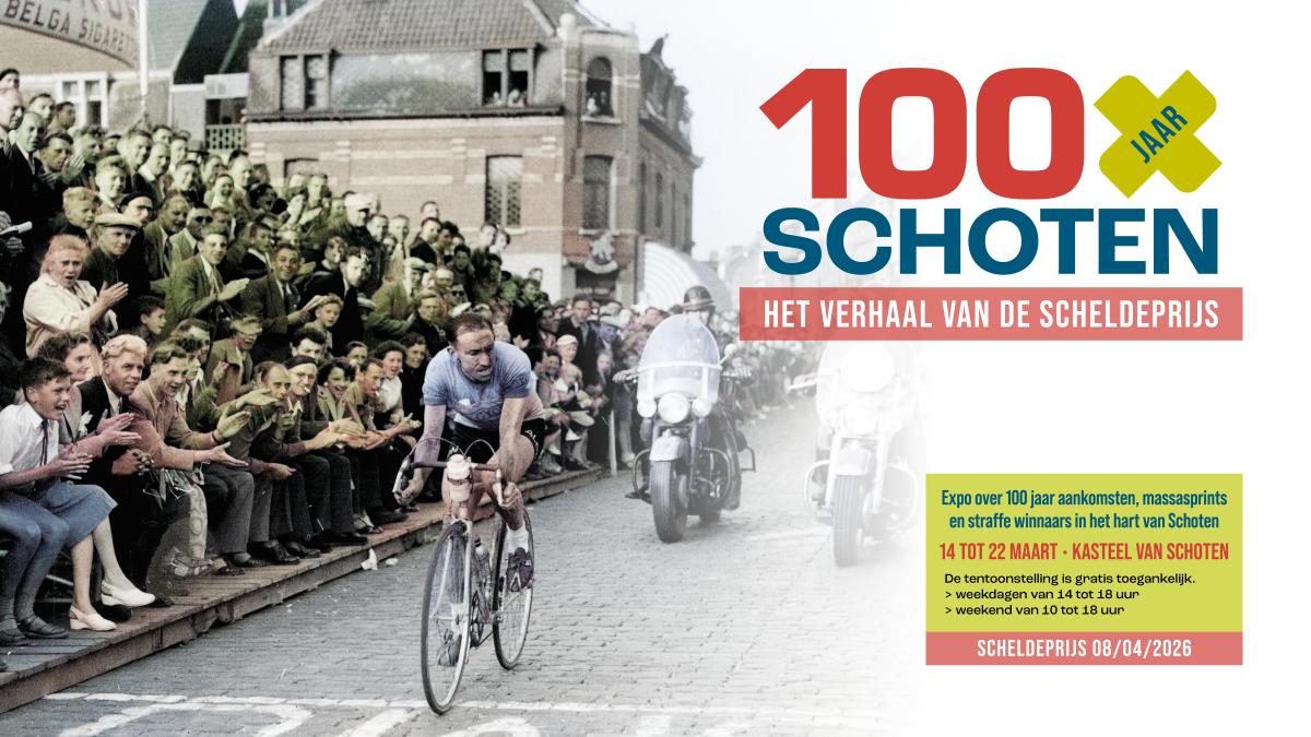 Wie de oudste wielerklassieker niet alleen wil beleven, maar ook hérbeleven, kan van 14 tot en met 22 maart terecht in het Kasteel van Schoten. De tentoonstelling ‘Het verhaal van de Scheldeprijs – 100 jaar aankomst in Schoten’ neemt je mee door een eeuw Schotense koersgeschiedenis.
