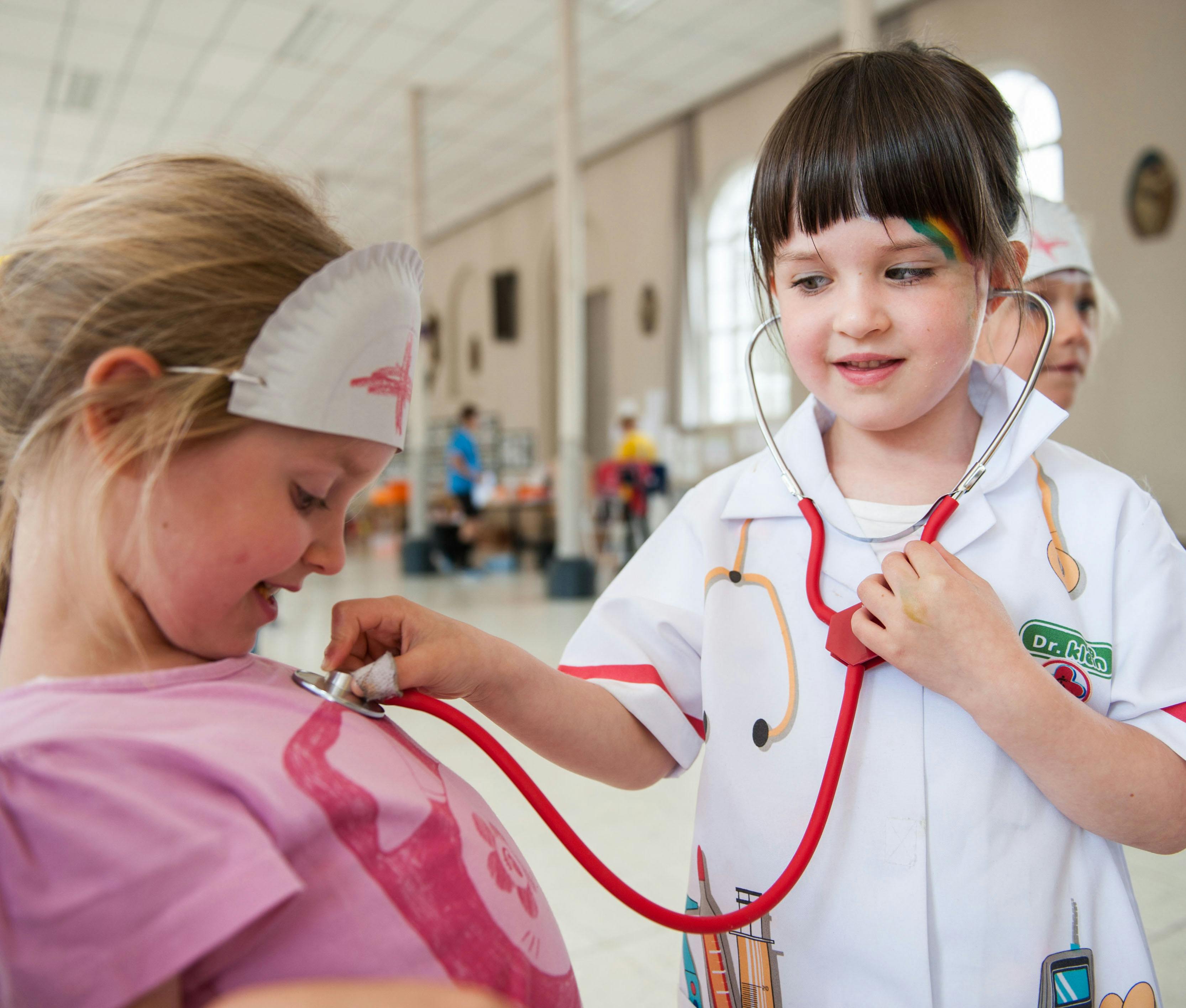 Hoelang zijn onze darmen? Welke zintuigen ken je? Hoeveel botten telt een skelet? Wat heeft de dokter allemaal in zijn tas? Neem een kijkje onder je huid en je zal jezelf heel wat beter leren kennen. Ben je al benieuwd? Dit gaan we doen: Zintuigspelletjes: kijken, luisteren, proeven, ruiken en voelen Luisteren naar het verhaal van Ridder Fonkelstein en prinses Hagelwit en zelf tandenpoetsen Kleef- en kleurtechniek om een eigen röntgenfoto te maken Hoekenwerk met de dokterstas Omtrek maken van het eigen lichaam Dit vakantiekamp is op maat voor kinderen van de tweede en derde kleuterklas. Hier gaan we op vakantiekamp: Een school die we inrichten tot een vrolijke kamplocatie Heel wat speelruimte met springkasteel, Clicshoek, leeshoek en spelkoffer Een vertrouwde omgeving dicht bij huis Een kamplocatie waar broer of zus tot 12 jaar ook een vakantiekamp kan kiezen