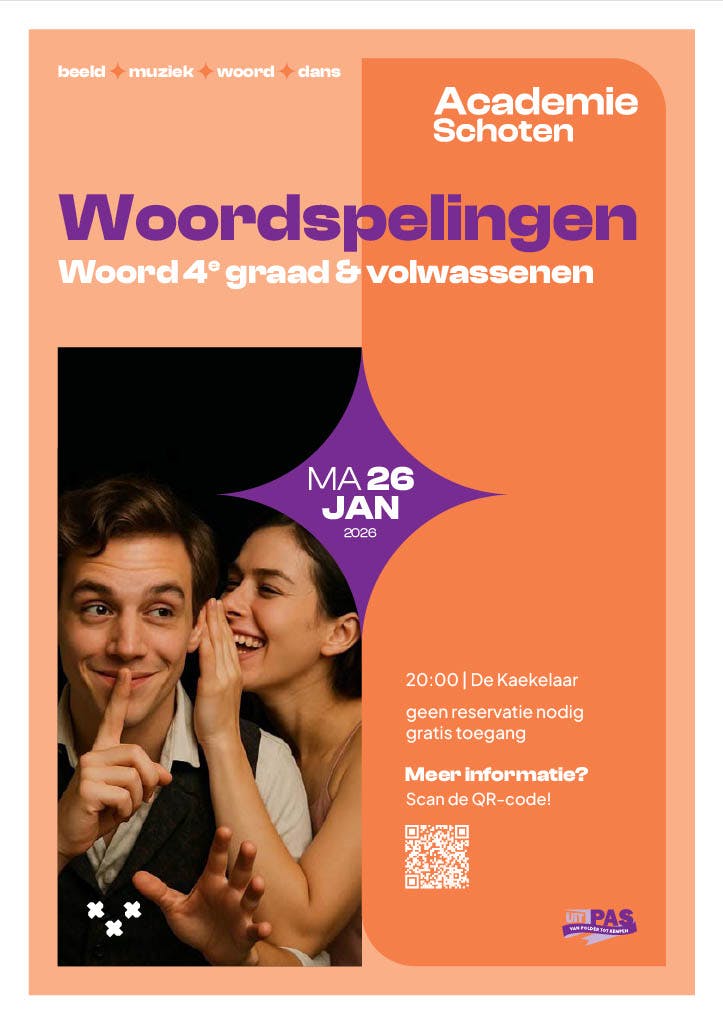 Op maandag 26 januari staan de leerlingen Woord 4e graad & volwassenen van onze academie in de Kaekelaar.