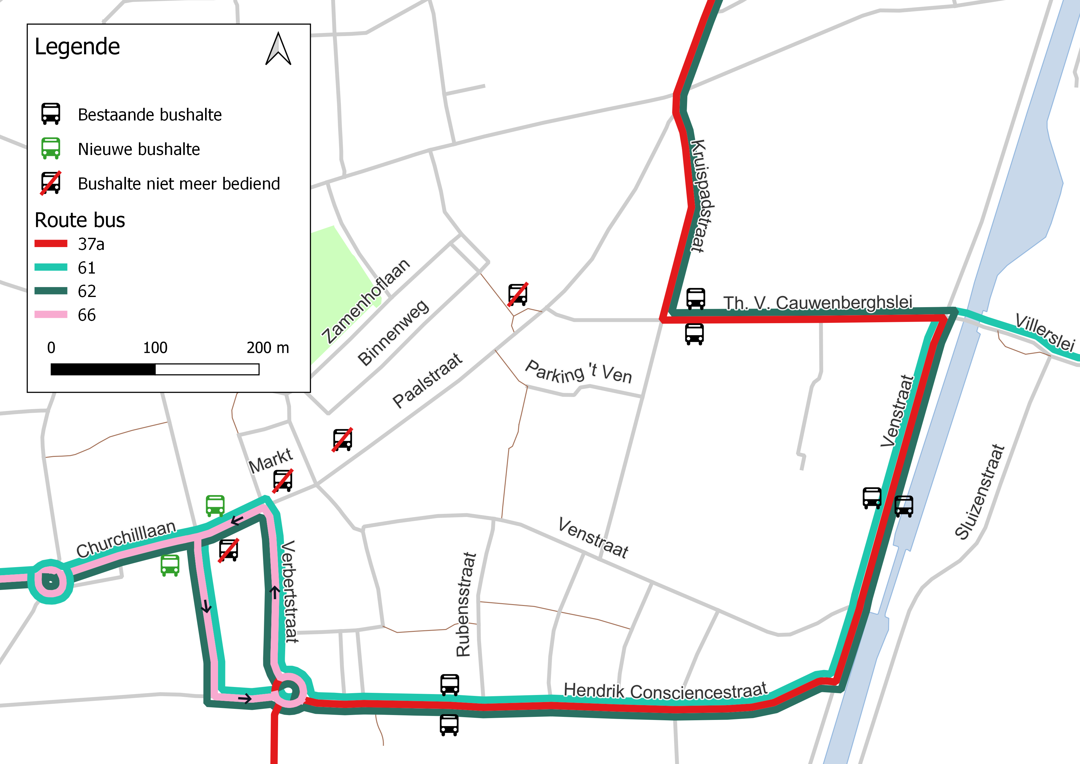De huidige bushalte aan de Markt verplaatsen we een vijftigtal meter verder naar de Churchilllaan.