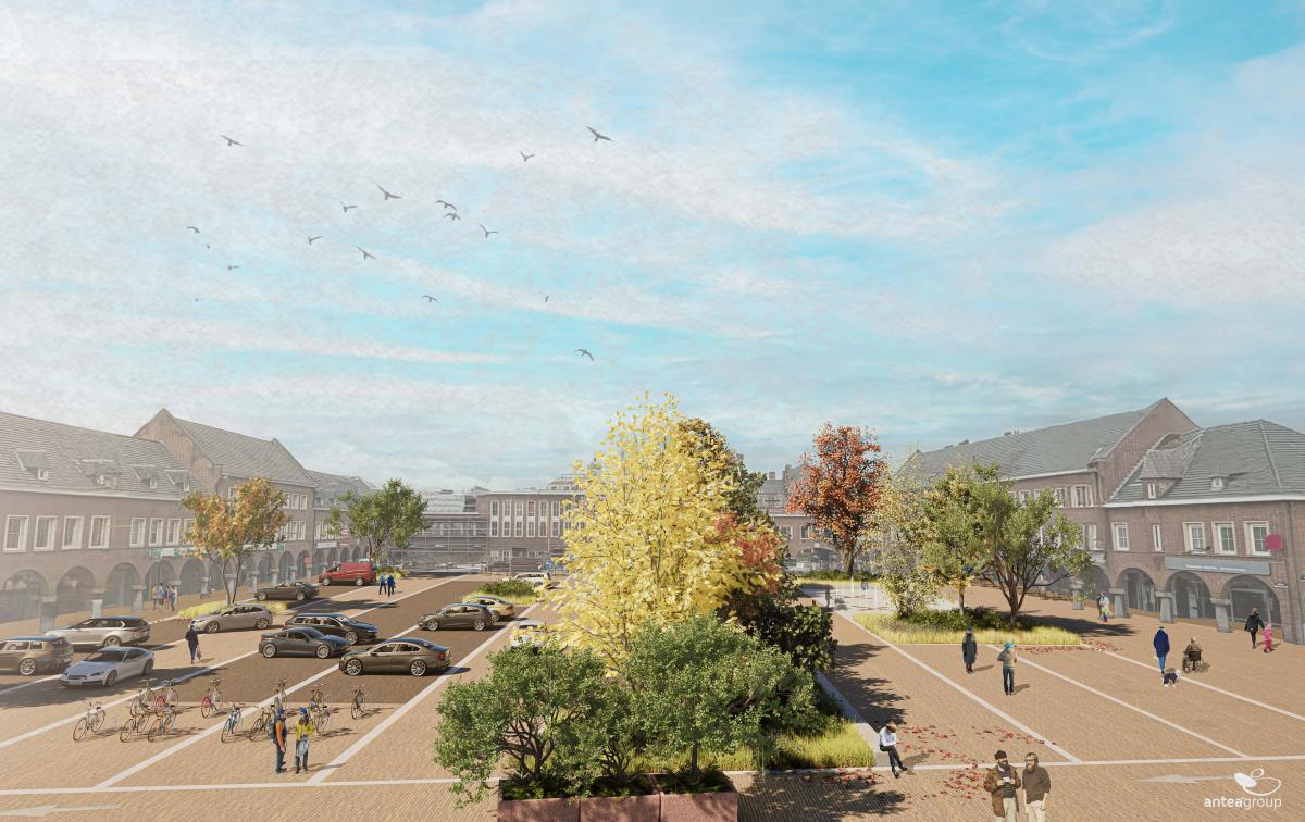 We trekken het plein visueel door tot aan het gemeentehuis, zodat er één groot, samenhangend geheel ontstaat dat doorloopt tot aan het Gelmelenhof.